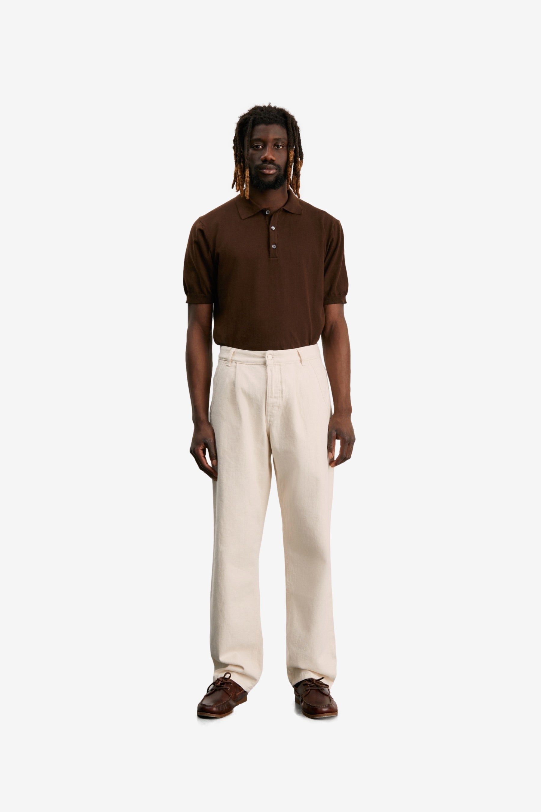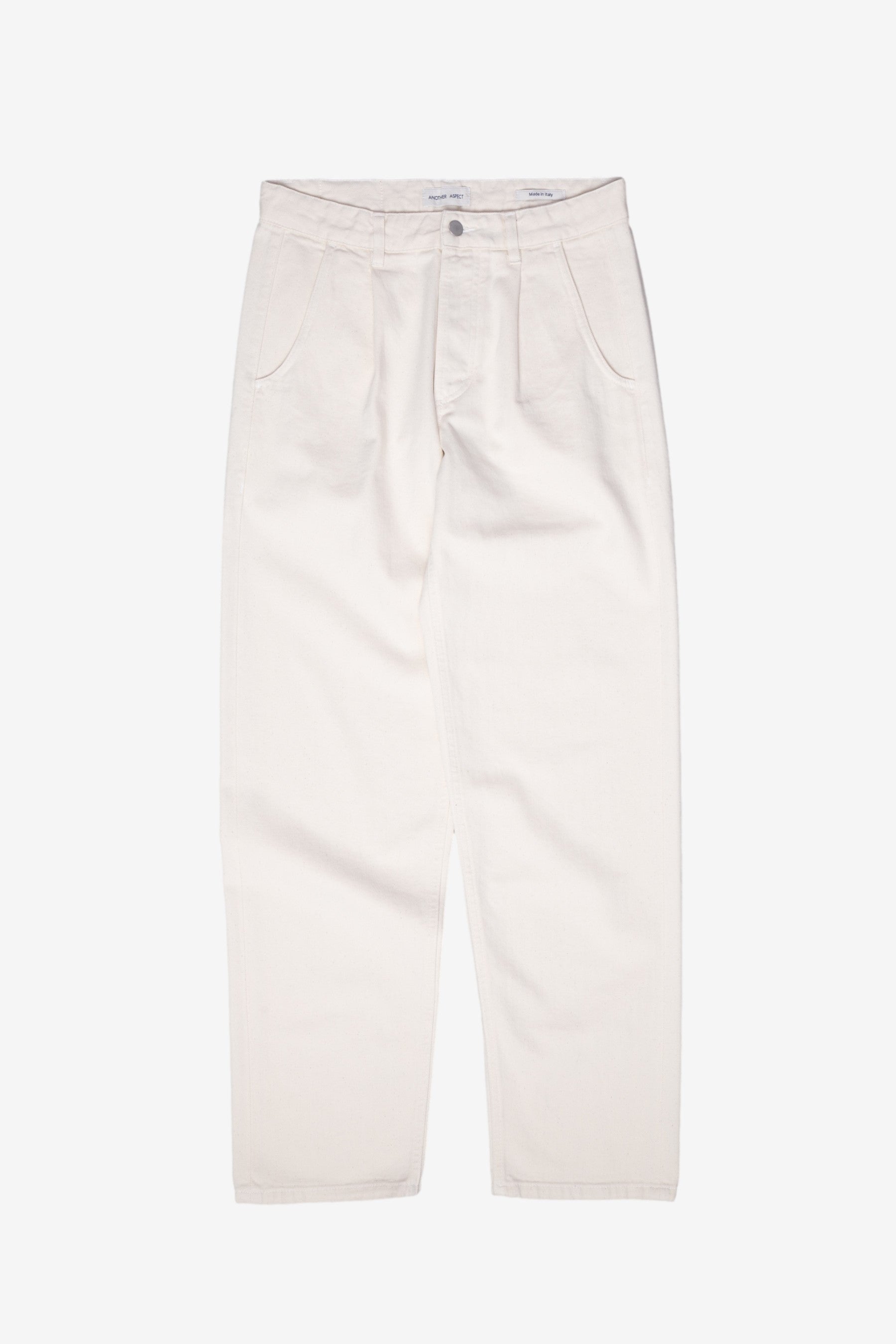 You're looking at the Another Jeans 2.0 in Ecru. Inspired by the tailored pants 1.0, single pleated at the front and with welt pockets. Constructed from 100% Organic Cotton (GOTS).