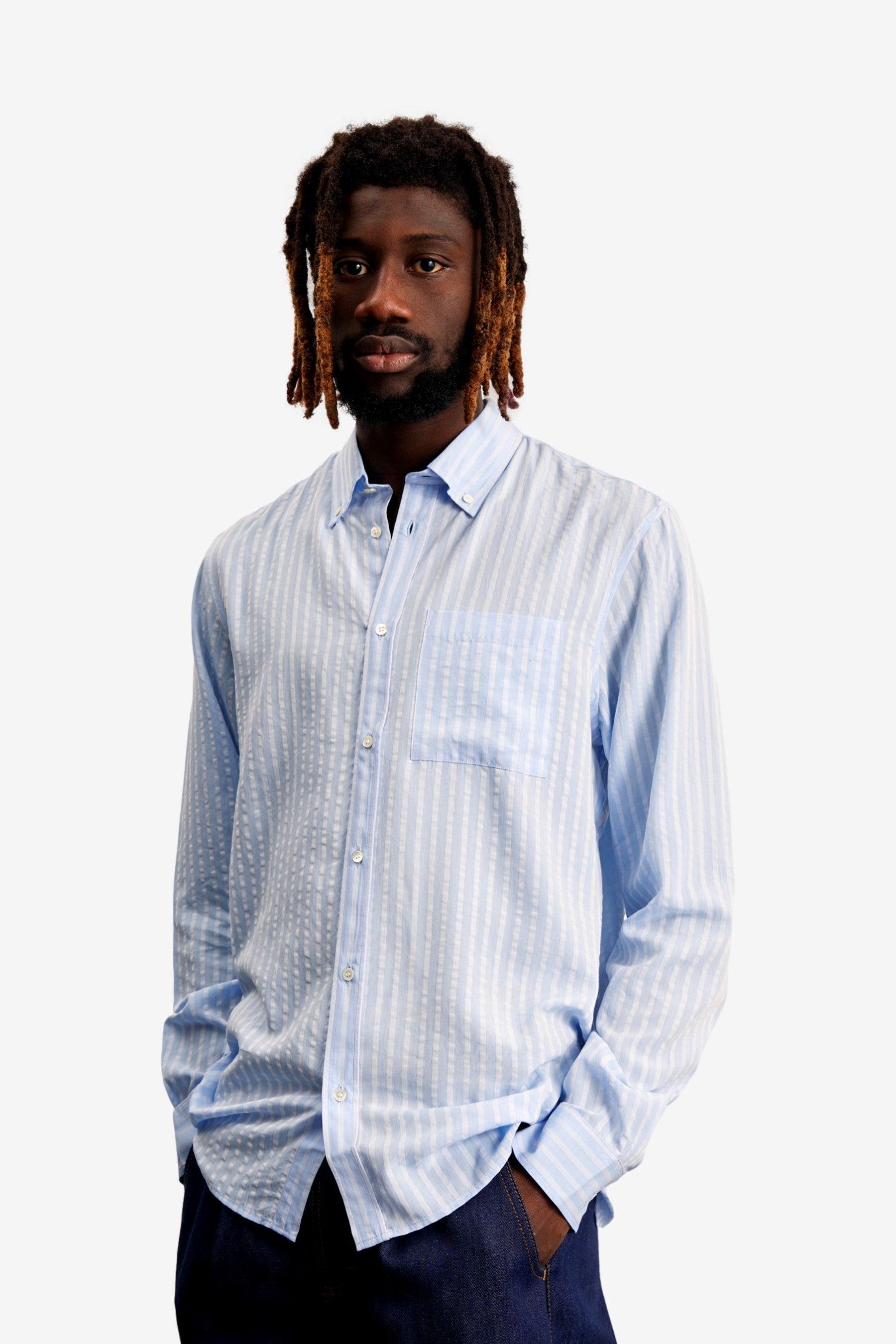 You are looking at the Shirt 1.0 in Sky Blue Stripe by Another Aspect.