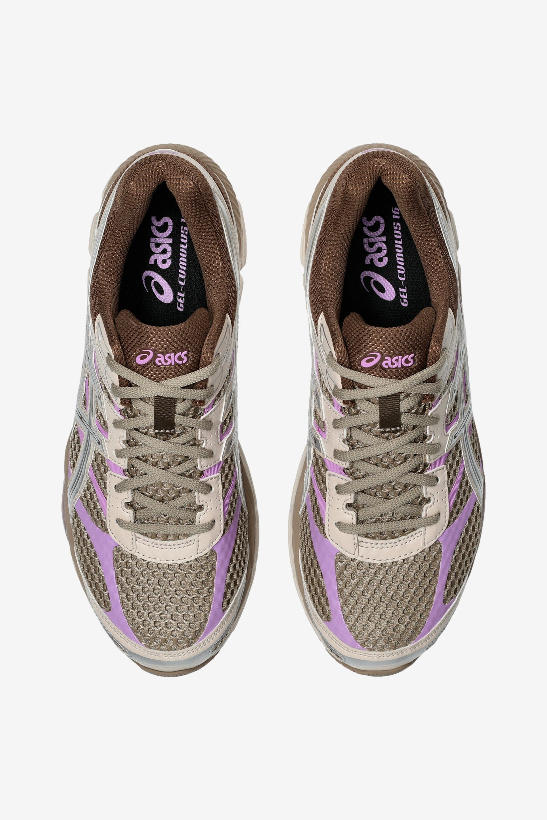 The ASICS Gel-Cumulus 16 in Cinnamon / Pure Silver is based on a neutral running model originally designed for everyday training. The upper features mesh panels combined with synthetic leather overlays, creating a structured yet breathable build.