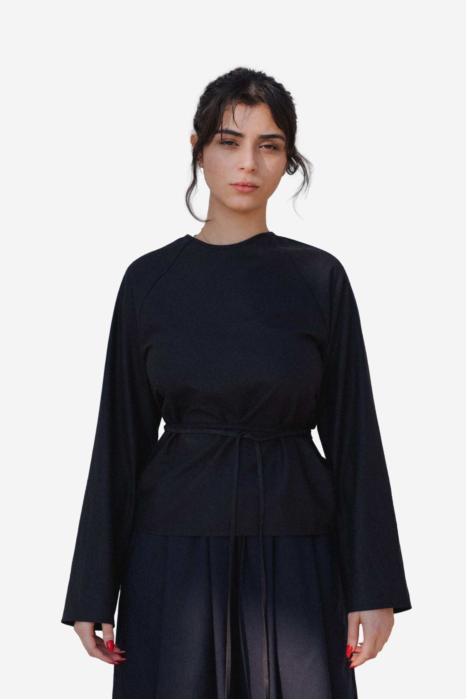 You are looking at the Baserange Long Sleeve Apron Top in Black.