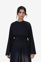 Long Sleeve Apron Top in Black