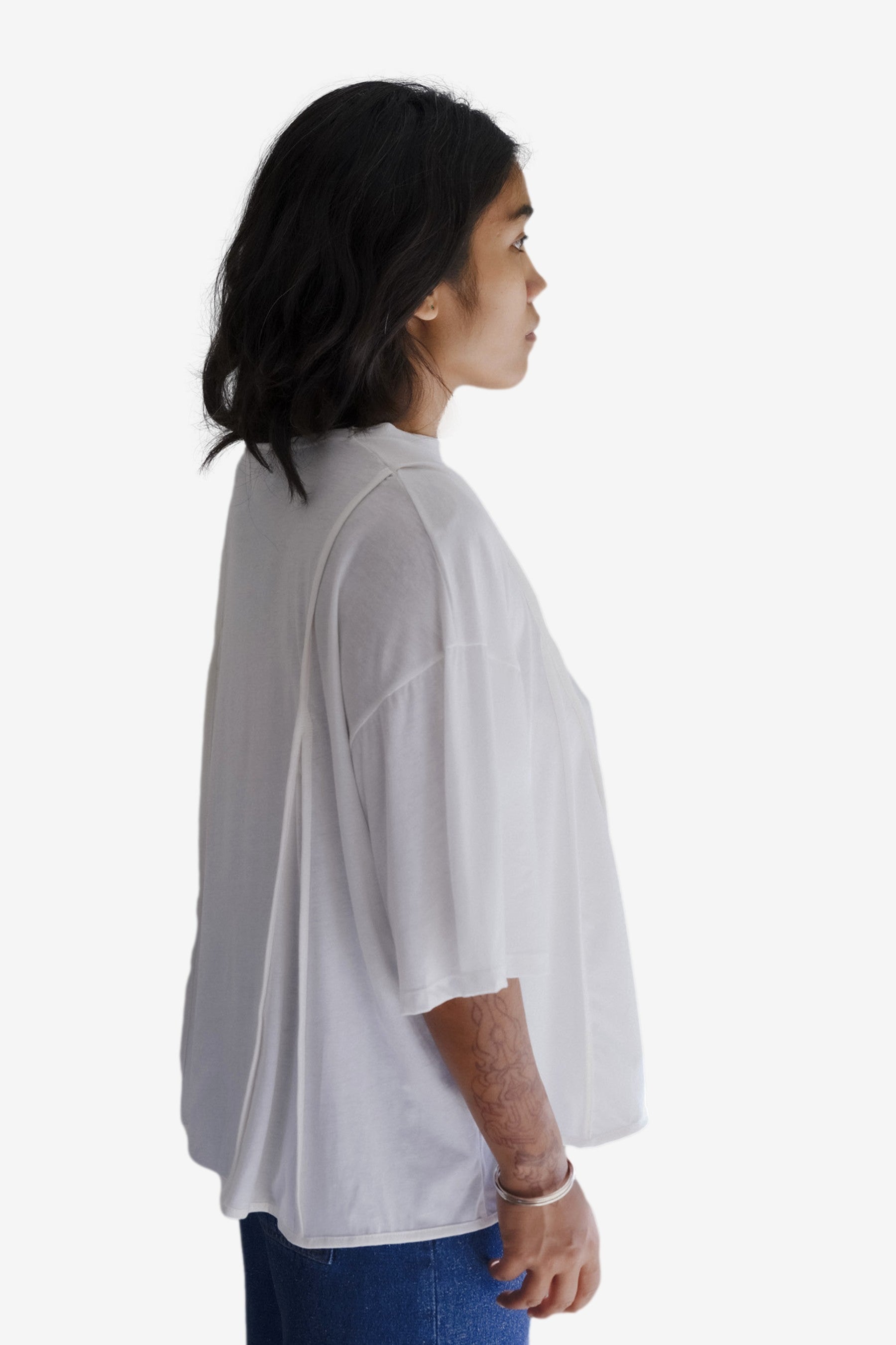 You are looking at the Baserange Mul Tee Shirt with an oversized fit.