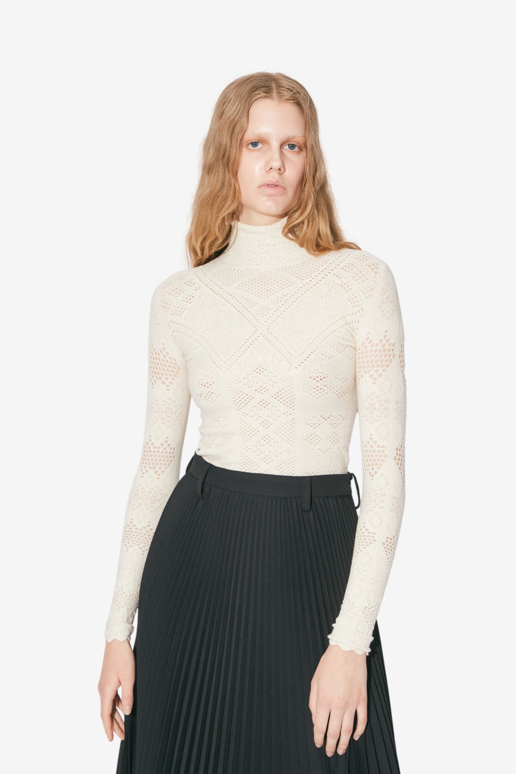 Stretchy Cotton Lace Pullover in Ecru