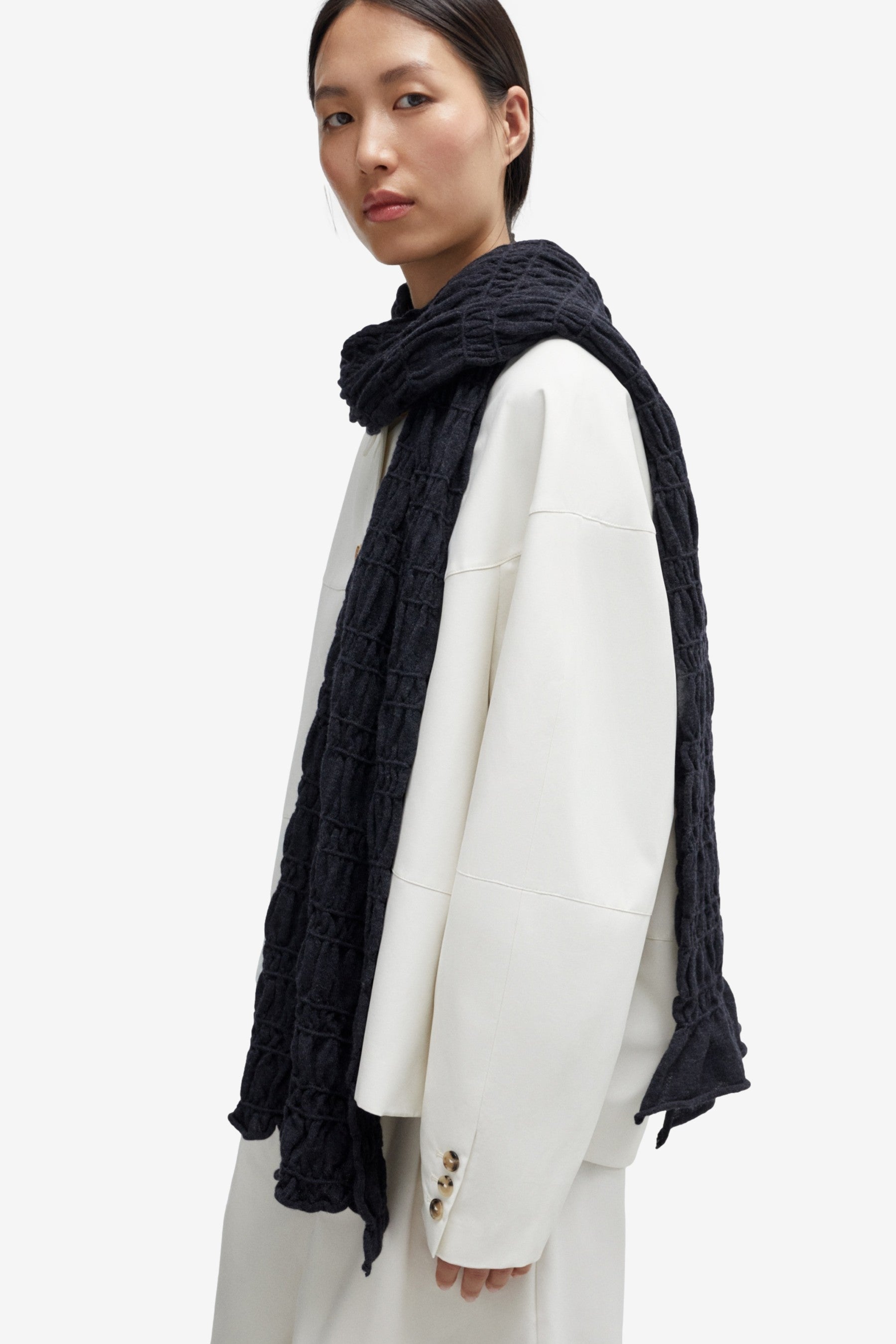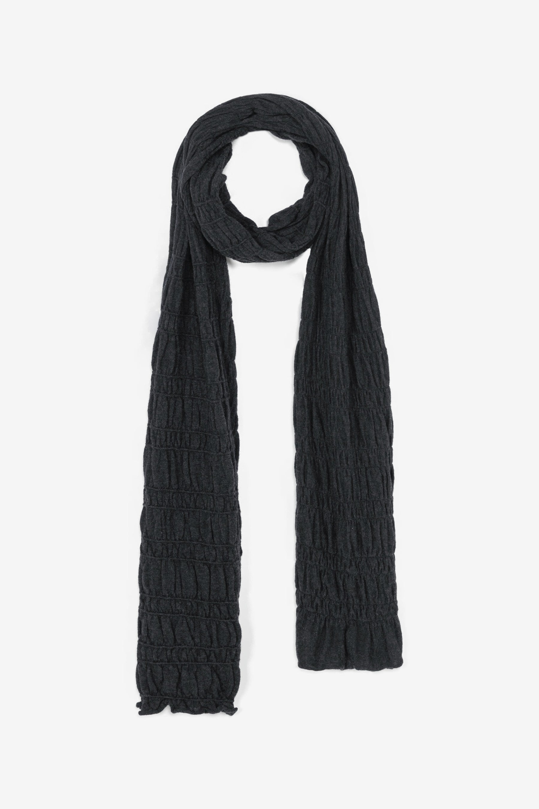 Merino Wool Gathered Wrap in Anthracite