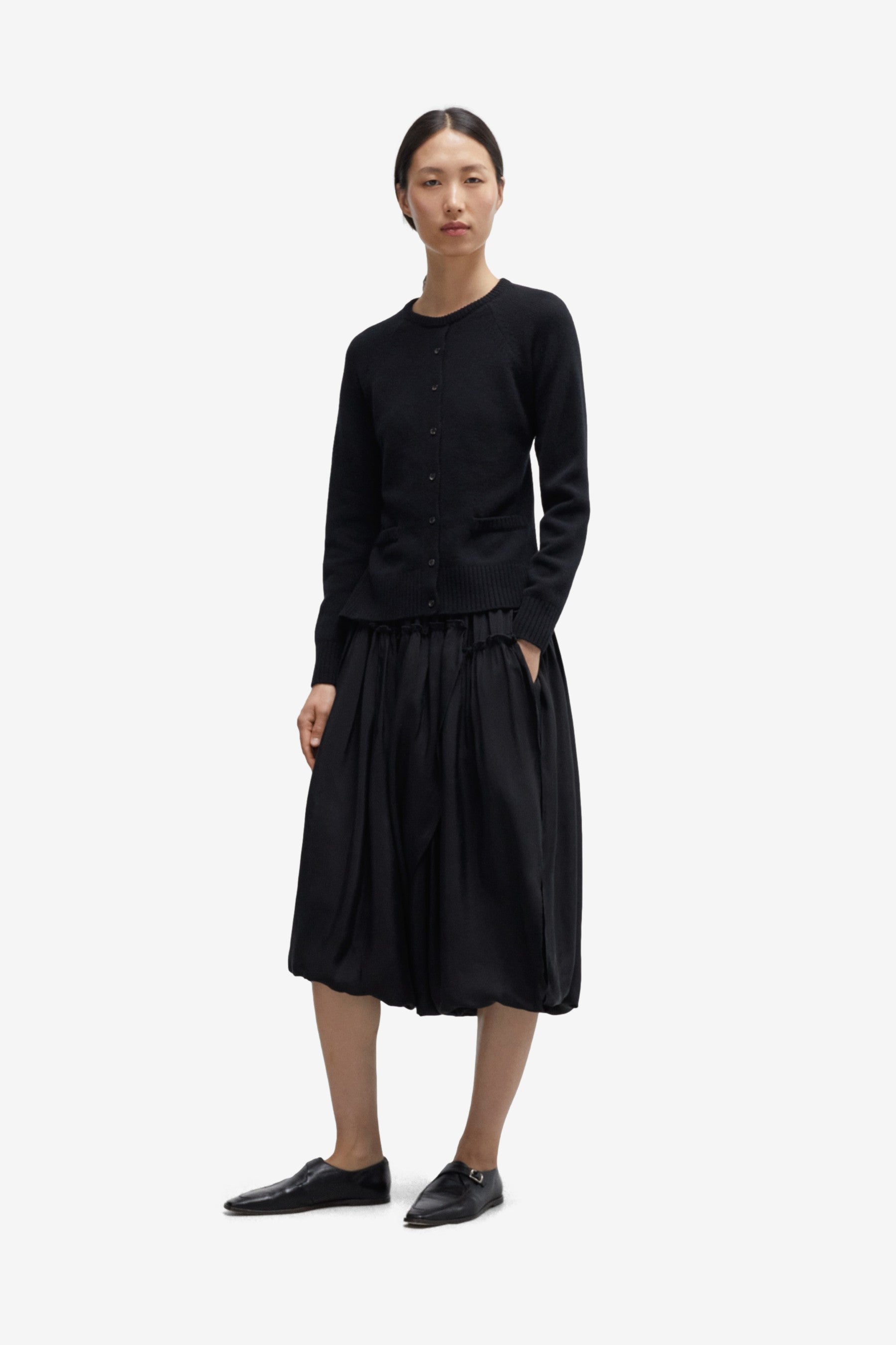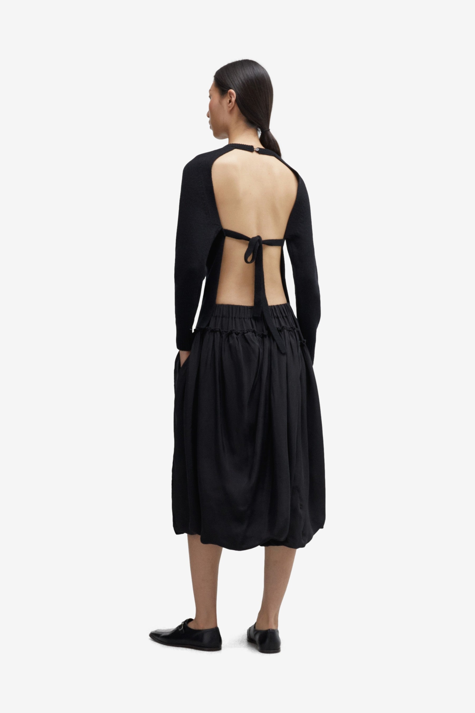 Merino Wool Open Back Cardigan in Black
