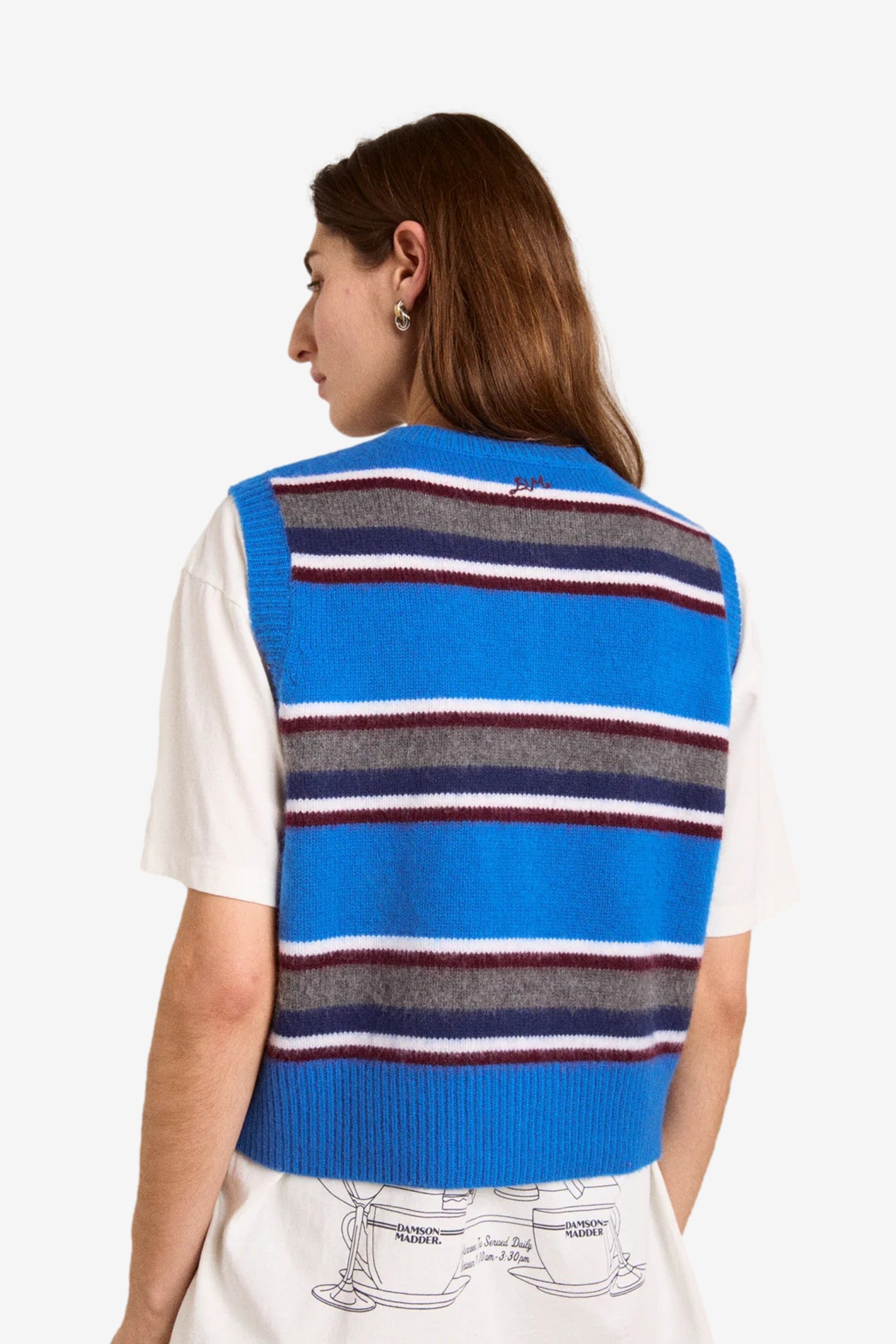 Sofie Merino Wool Vest in Blue Stripe