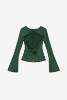 Solid Stretch Satin Long Sleeve Blouse in Pineneedle