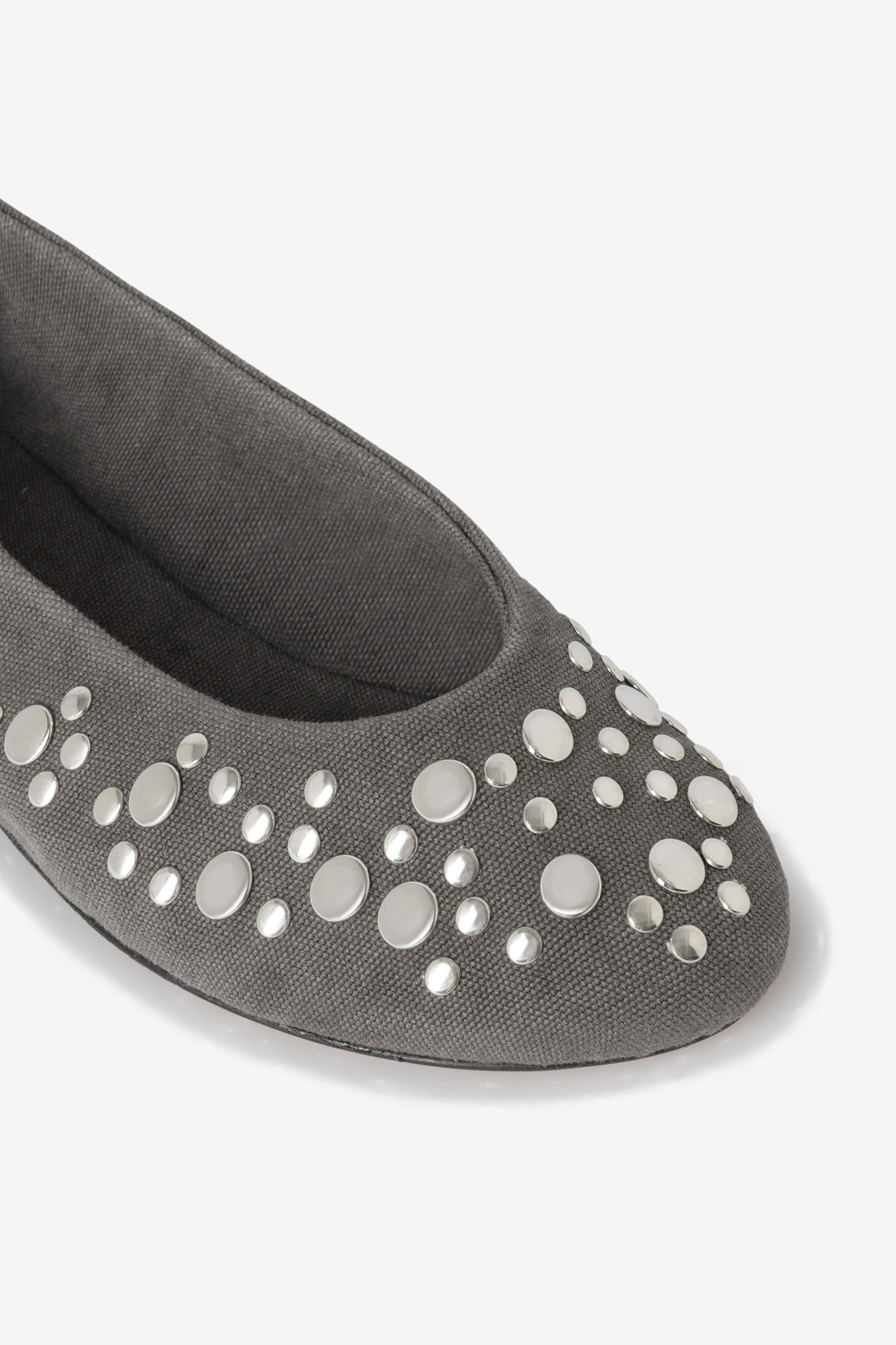 Gimaguas Bailarina Studs Canvas in Grey. Ballet flats crafted from canvas with a rounded toe, silver-tone stud detailing across the upper and a flat sole.