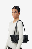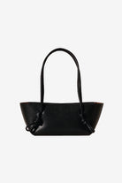 Baguette shoulder bag with knotted handle detail, crafted in polished Italian calf leather and lined with calf suede. Handmade in Spain by uniquely talented artisans, celebrating excellence in craftsmanship.