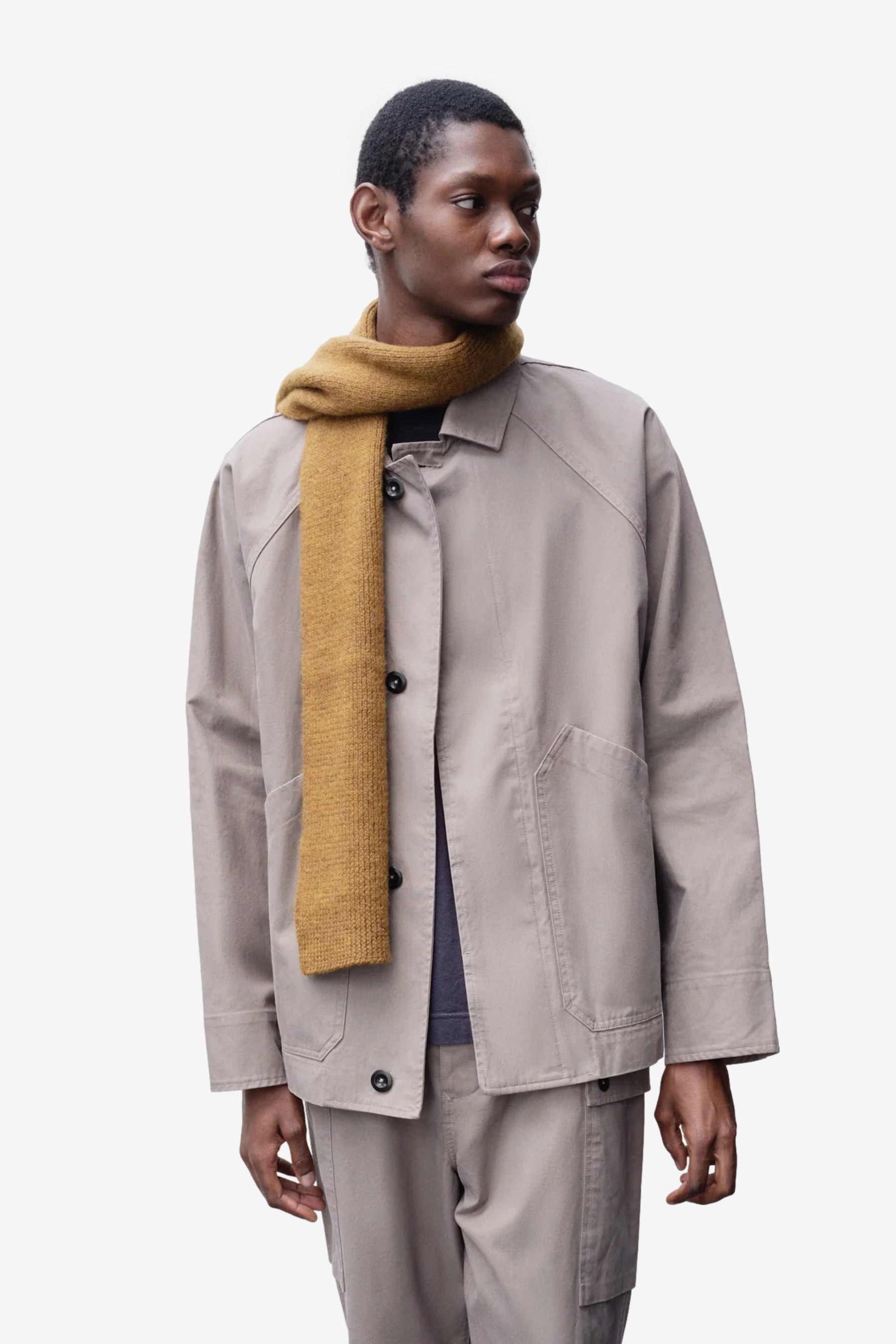 Brushed Scarf in Ochre from Margaret Howell, midweight soft Shetland wool with a natural hand feel. Simple, warm winter layer.
