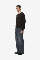 Round Neck Sweater in Dark Brown Ajour Stripe