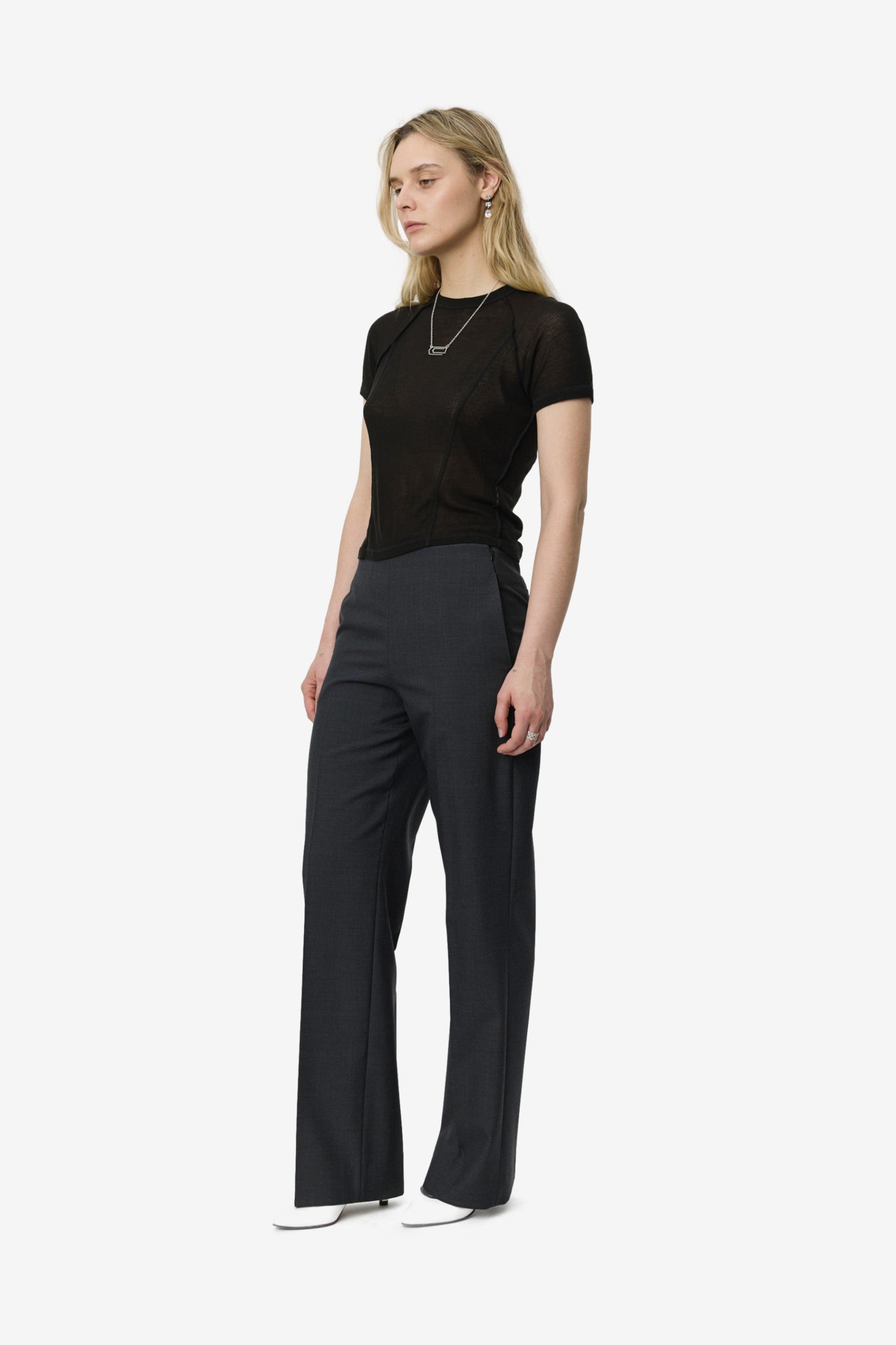 You are looking at the Taper Trousers in Dark Grey Tropical Wool by mfpen.