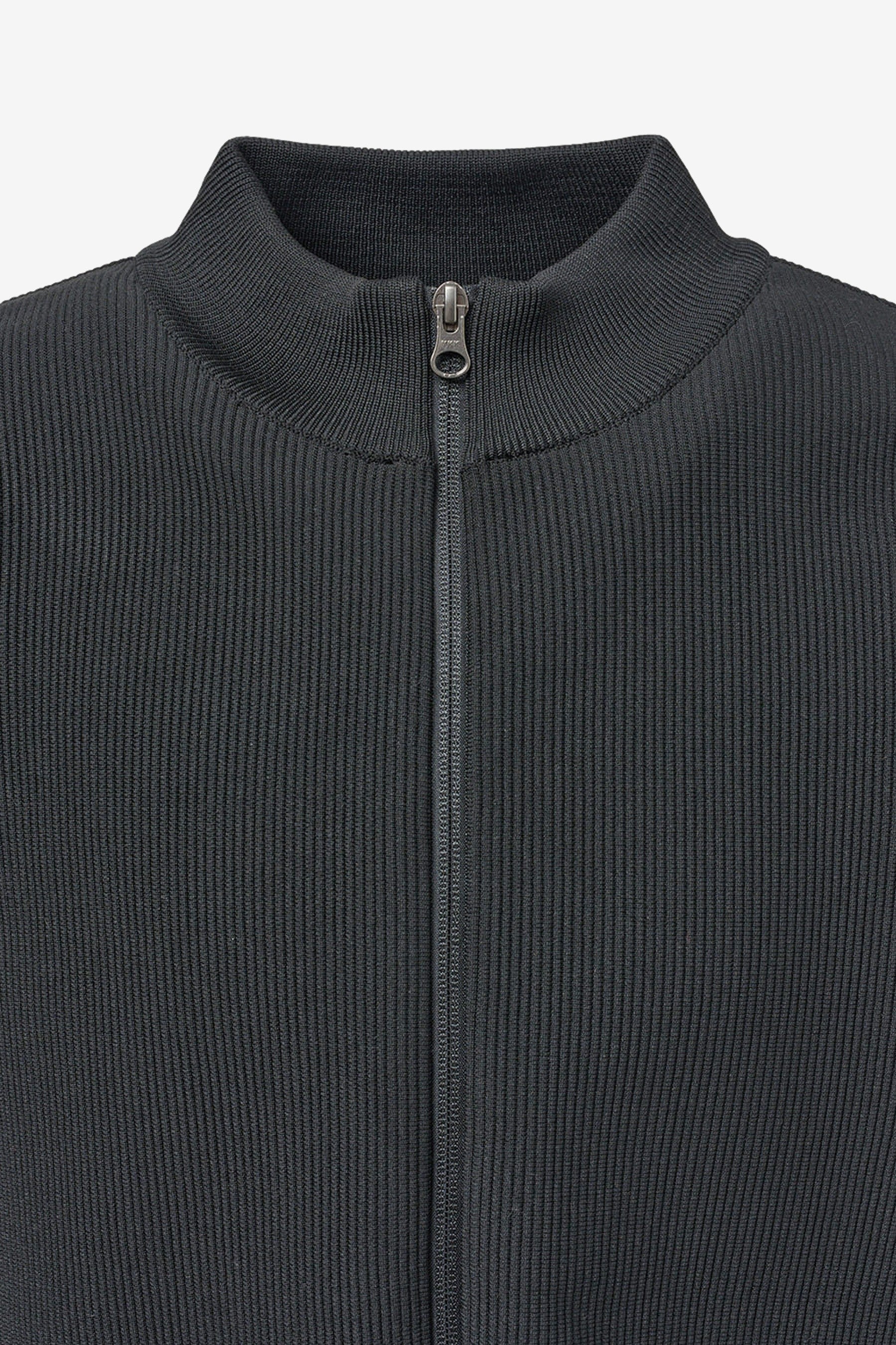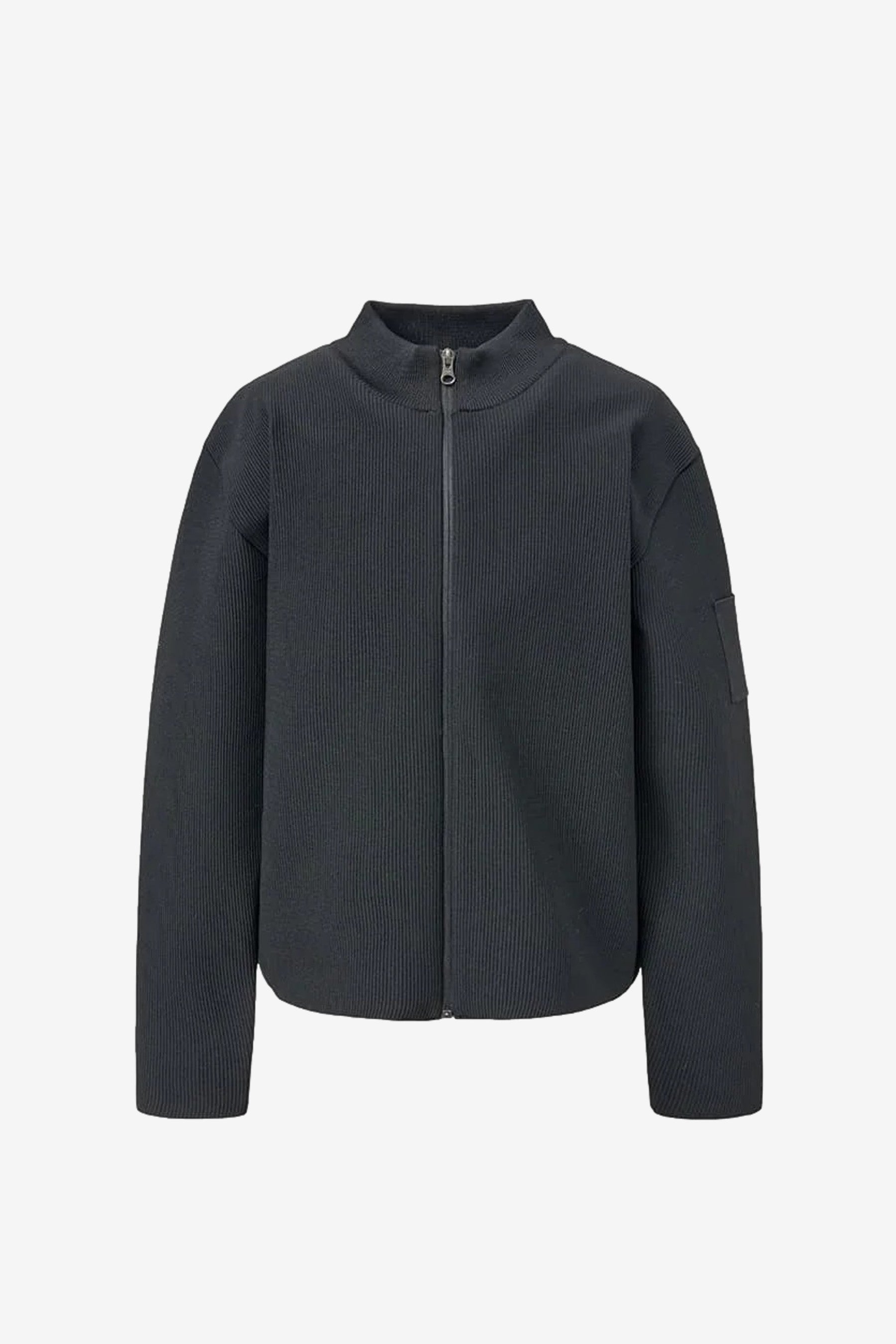You're looking at the Mock Neck Zip-Up Cardigan in Black designed by Amomento.