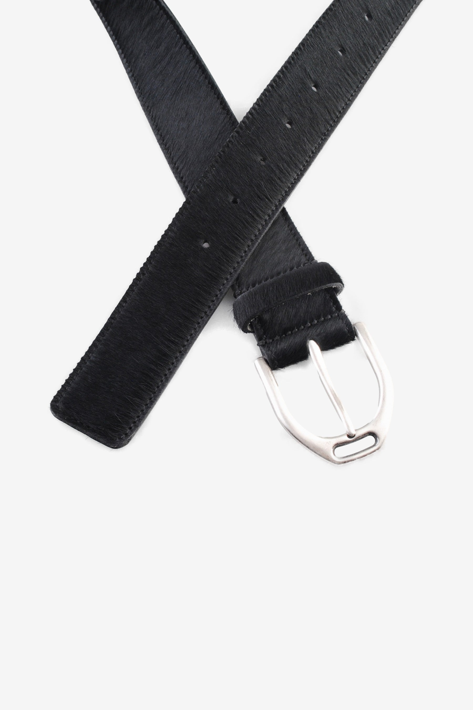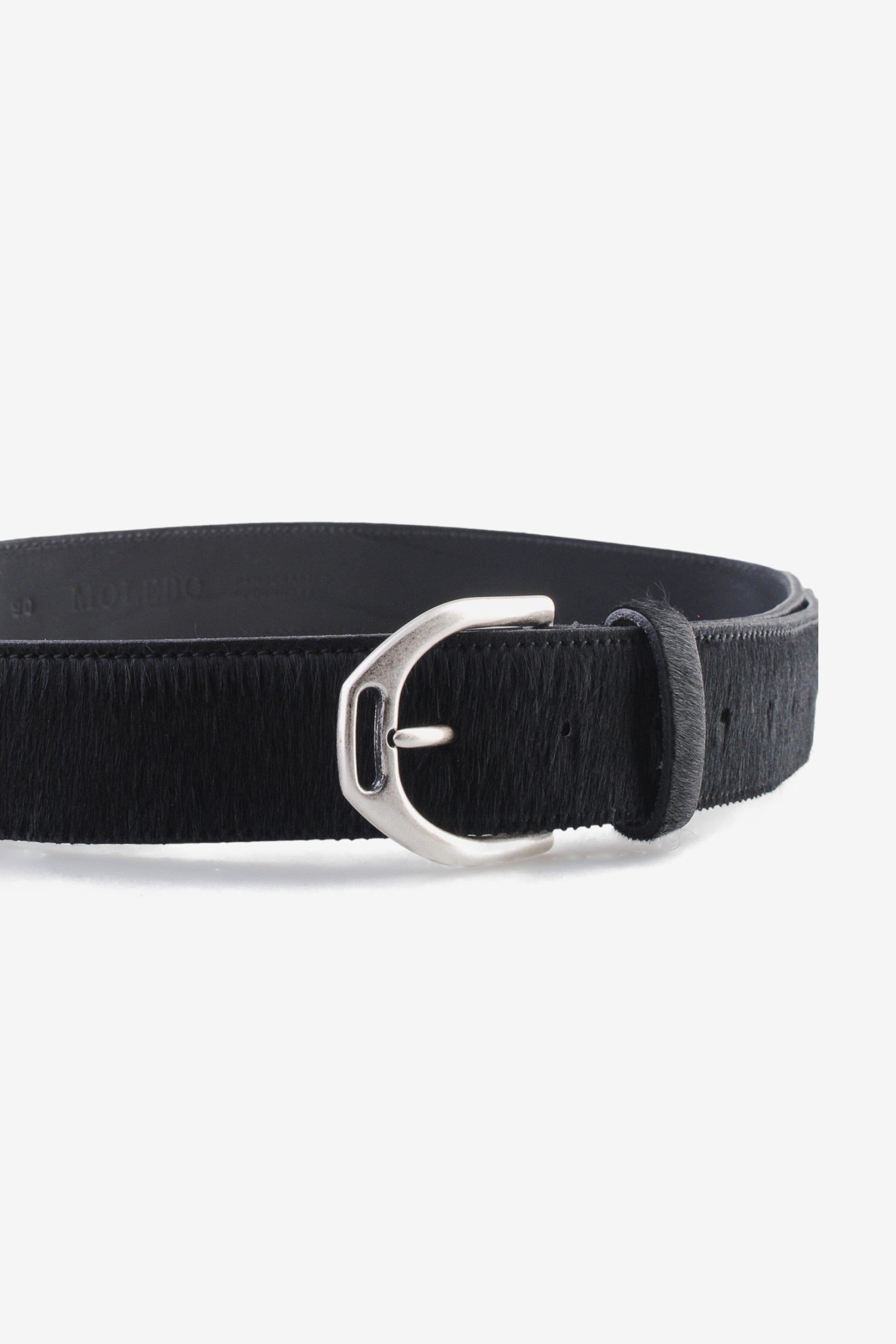 The M2428 in Black Pony by Molebo is a 4 cm wide leather belt featuring a matte solid brass buckle and a hair-on-hide surface in black. All Molebo belts are made in a family-owned workshop in Denmark, where traditional craftsmanship and attention to detail are central to every piece.