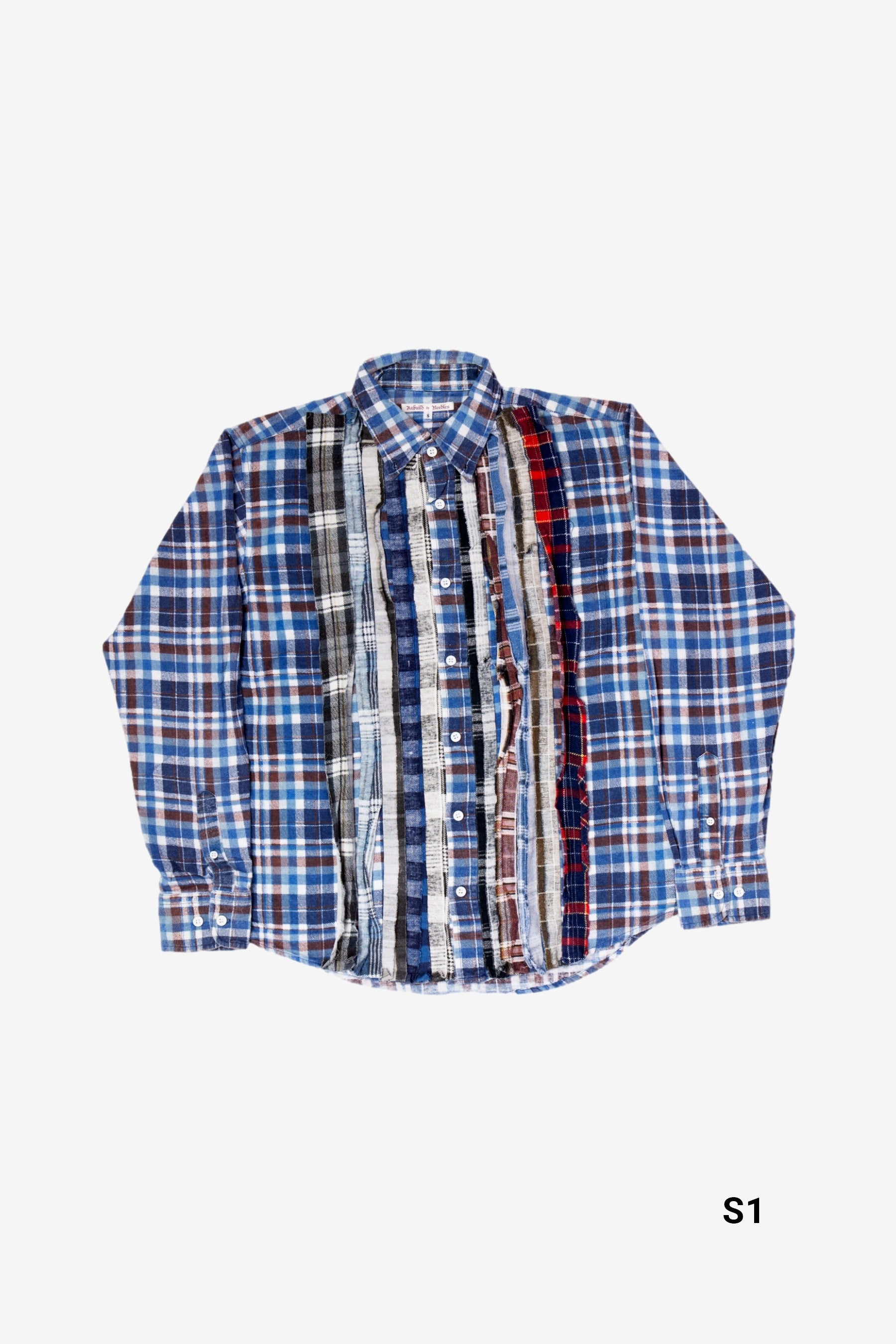 Rebuild by Needles is a collection from the Japanese label Needles. The Rebuild collection pays homage to founder Keizo Shimuzu's pastime sourcing vintage garments in America. This is done by handcrafting a patchwork of different fabrics which makes every shirt unique.