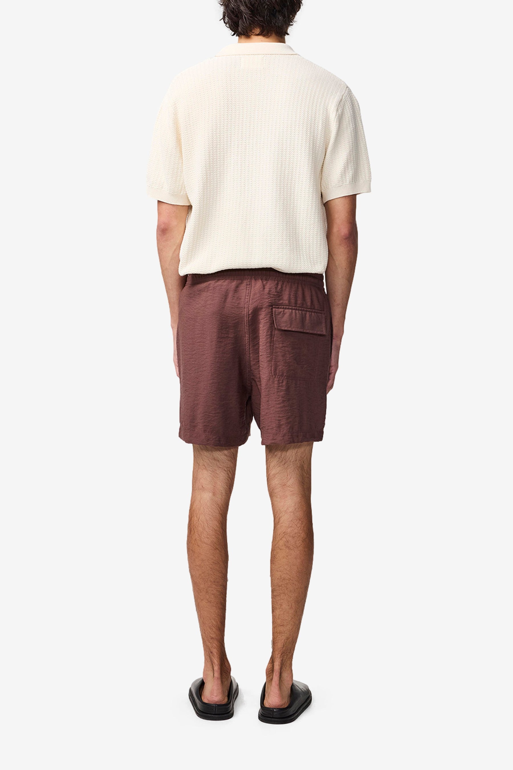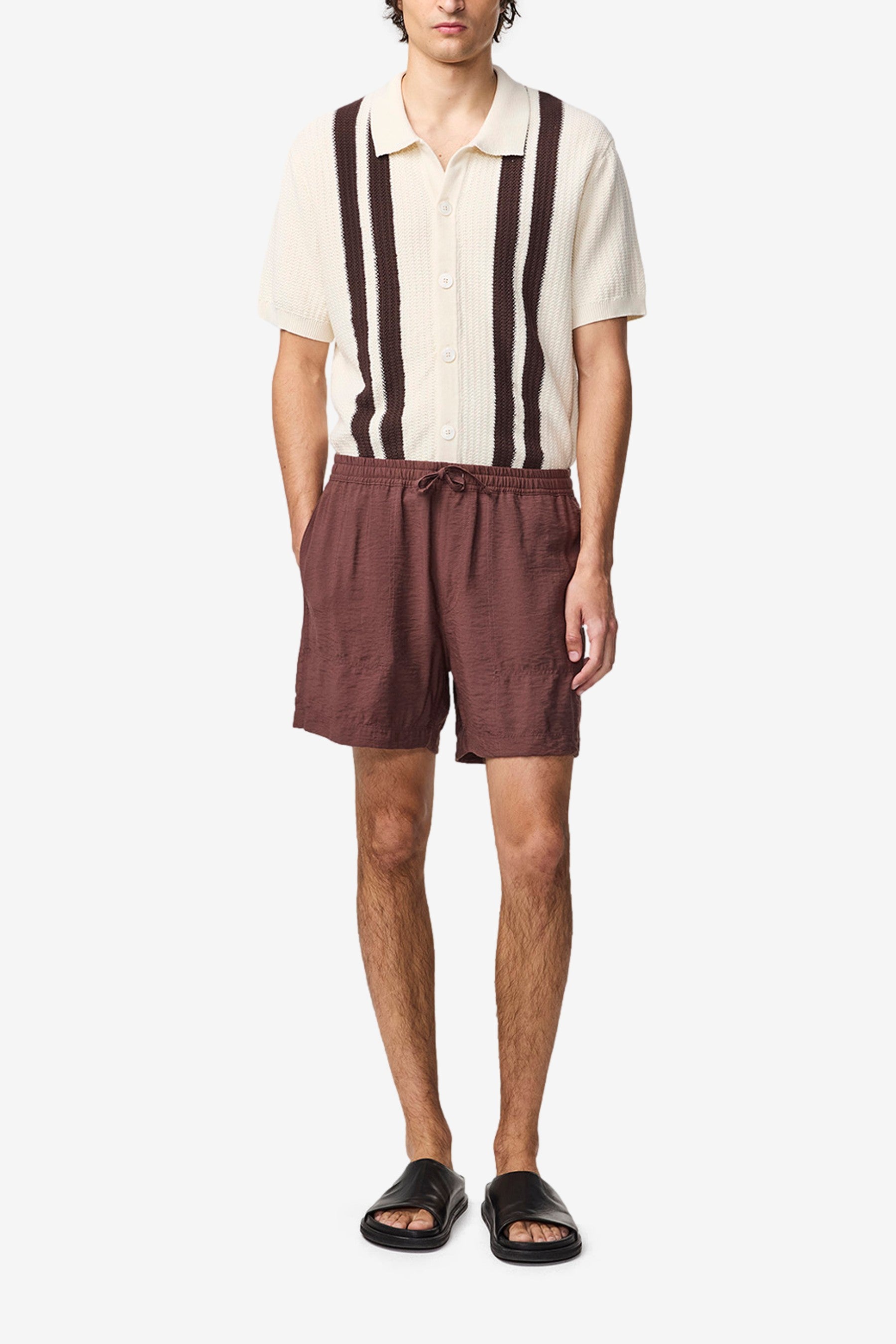 Shorts crafted in a crinkle TENCEL™ Modal blend with an elasticated waistband, a drawstring closure, and pockets in the side seam.