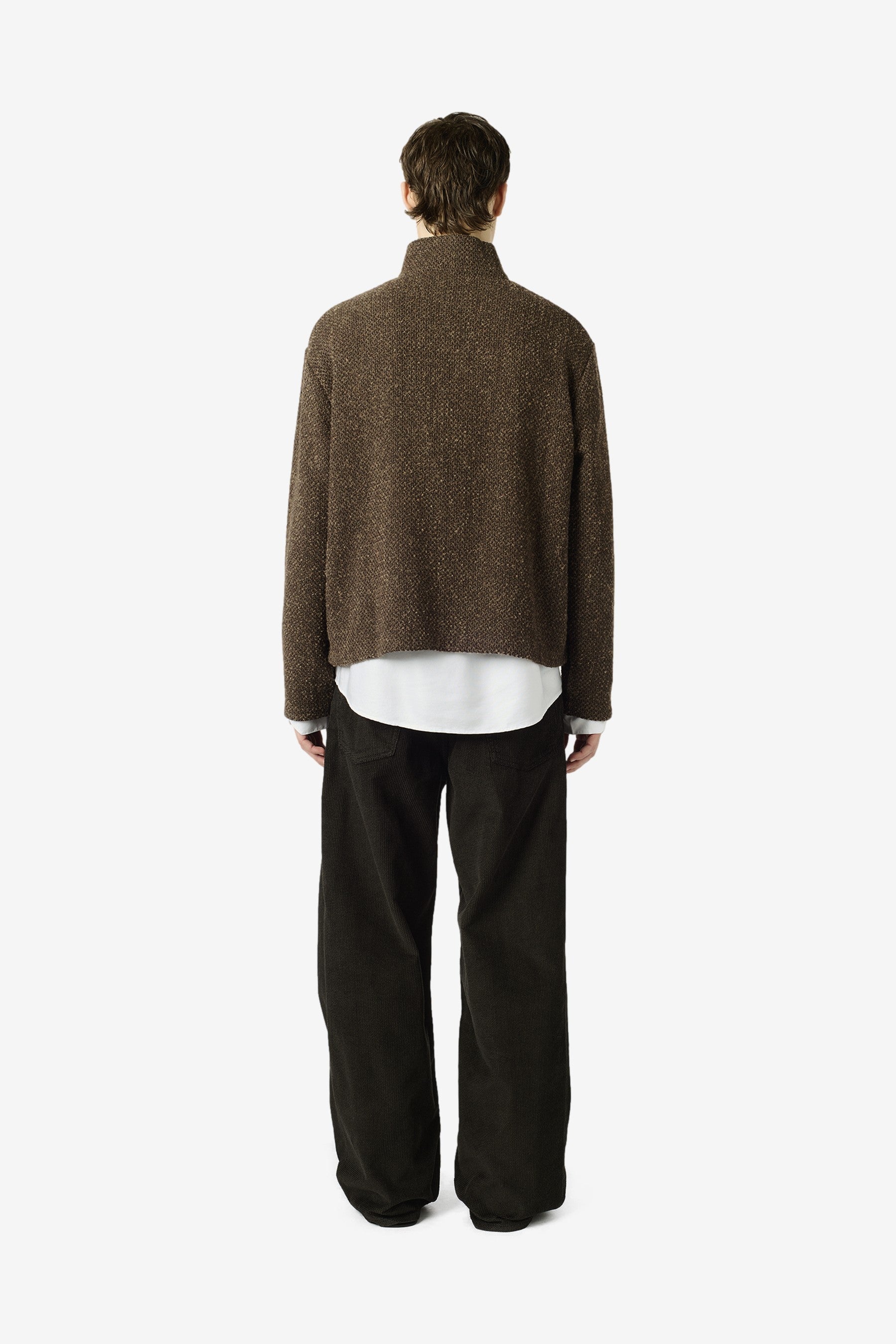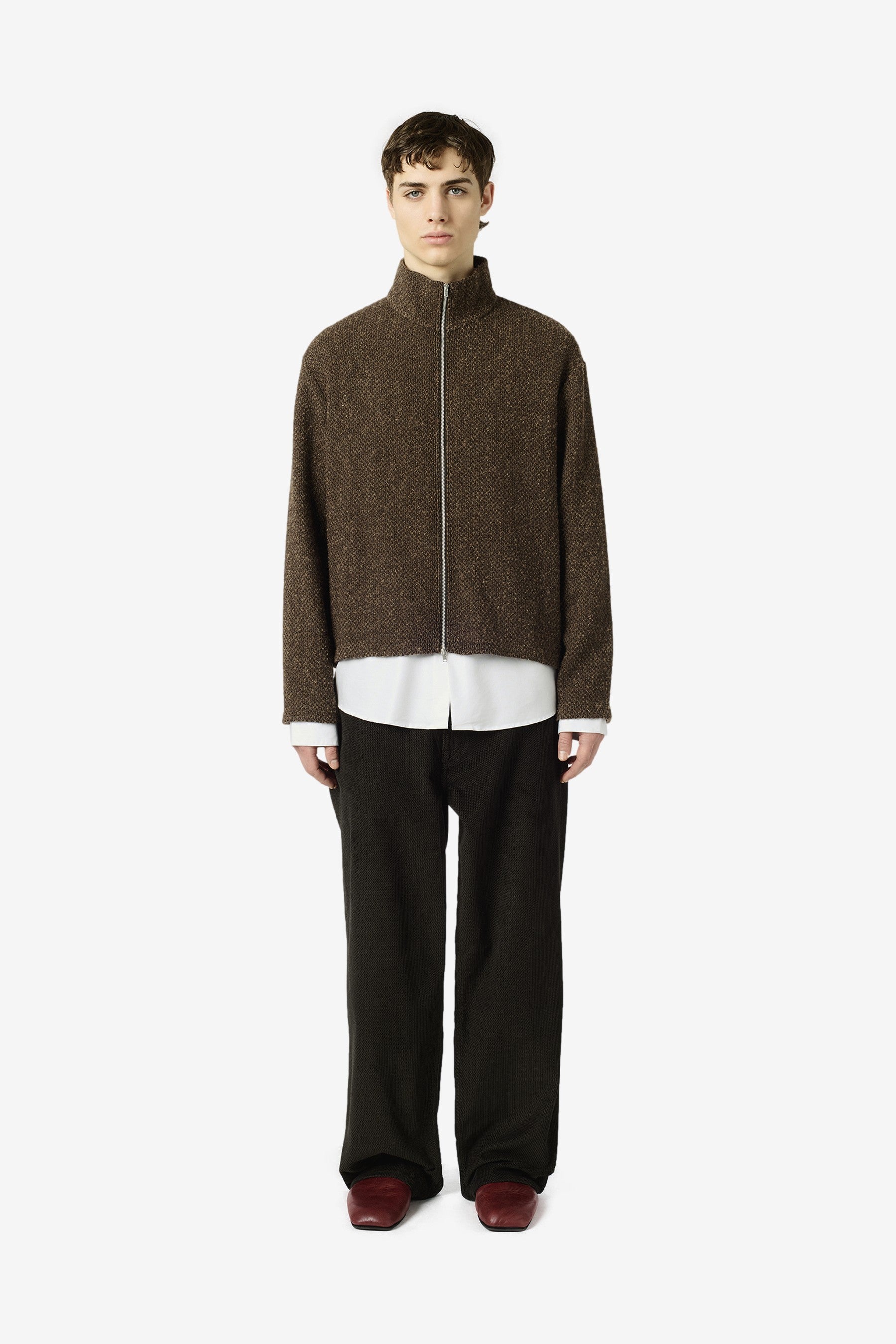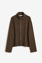 Shrunken Fullzip Polo in Brown Sparse Buckle Weave