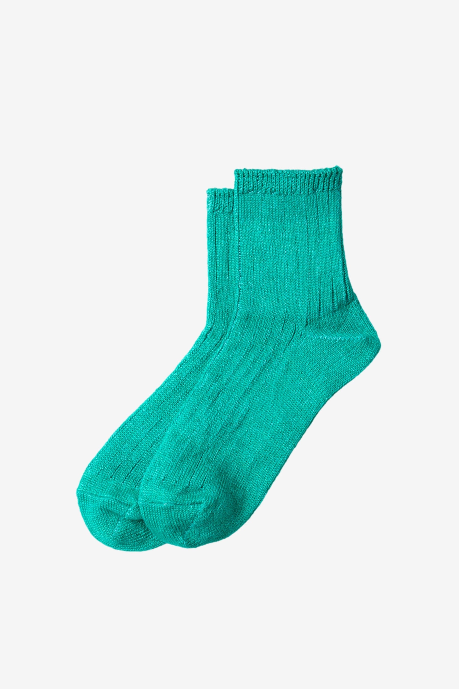 You are looking at the R1462 Linen Cotton Ribbed Ankle Socks in Aqua Green by ROTOTO.