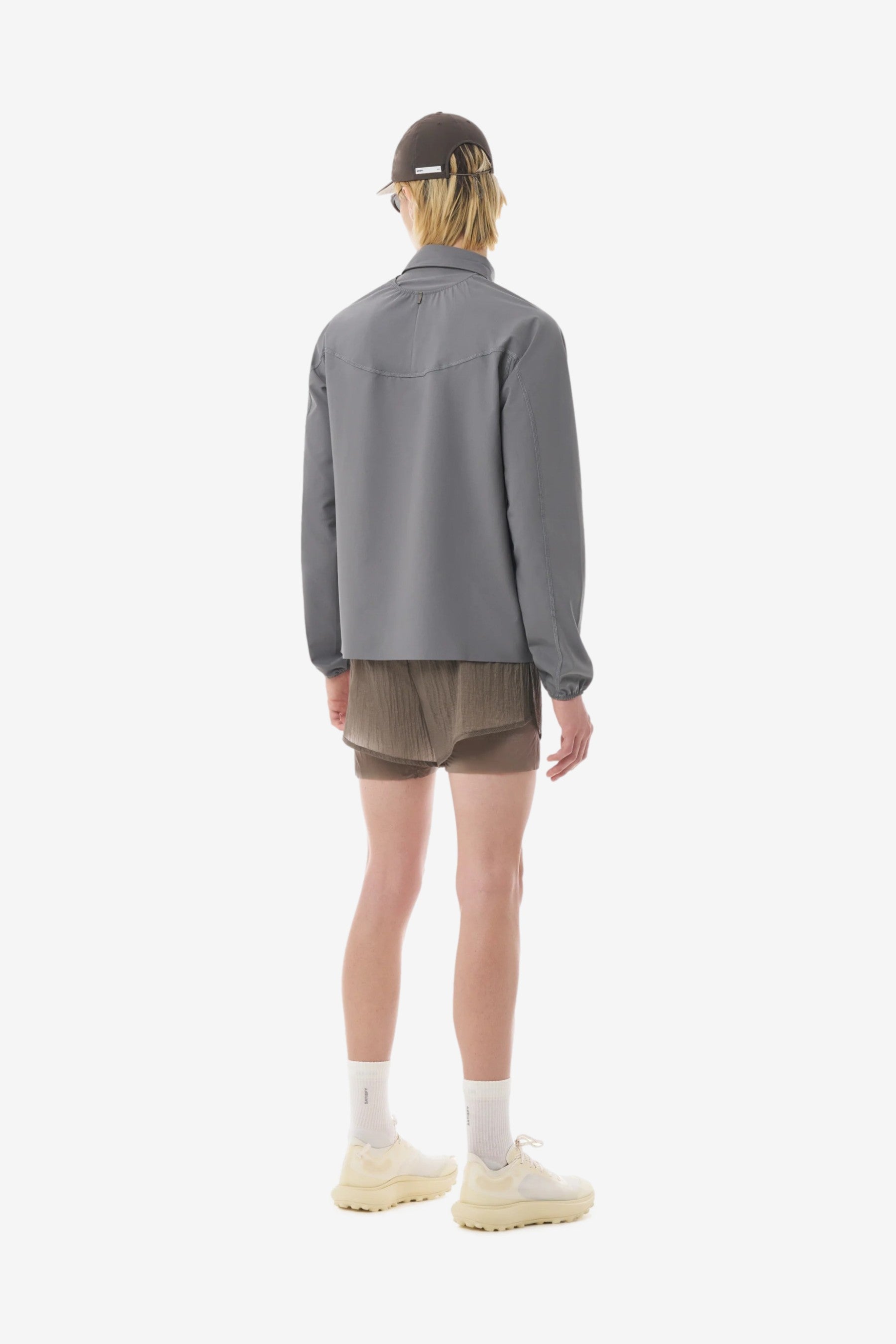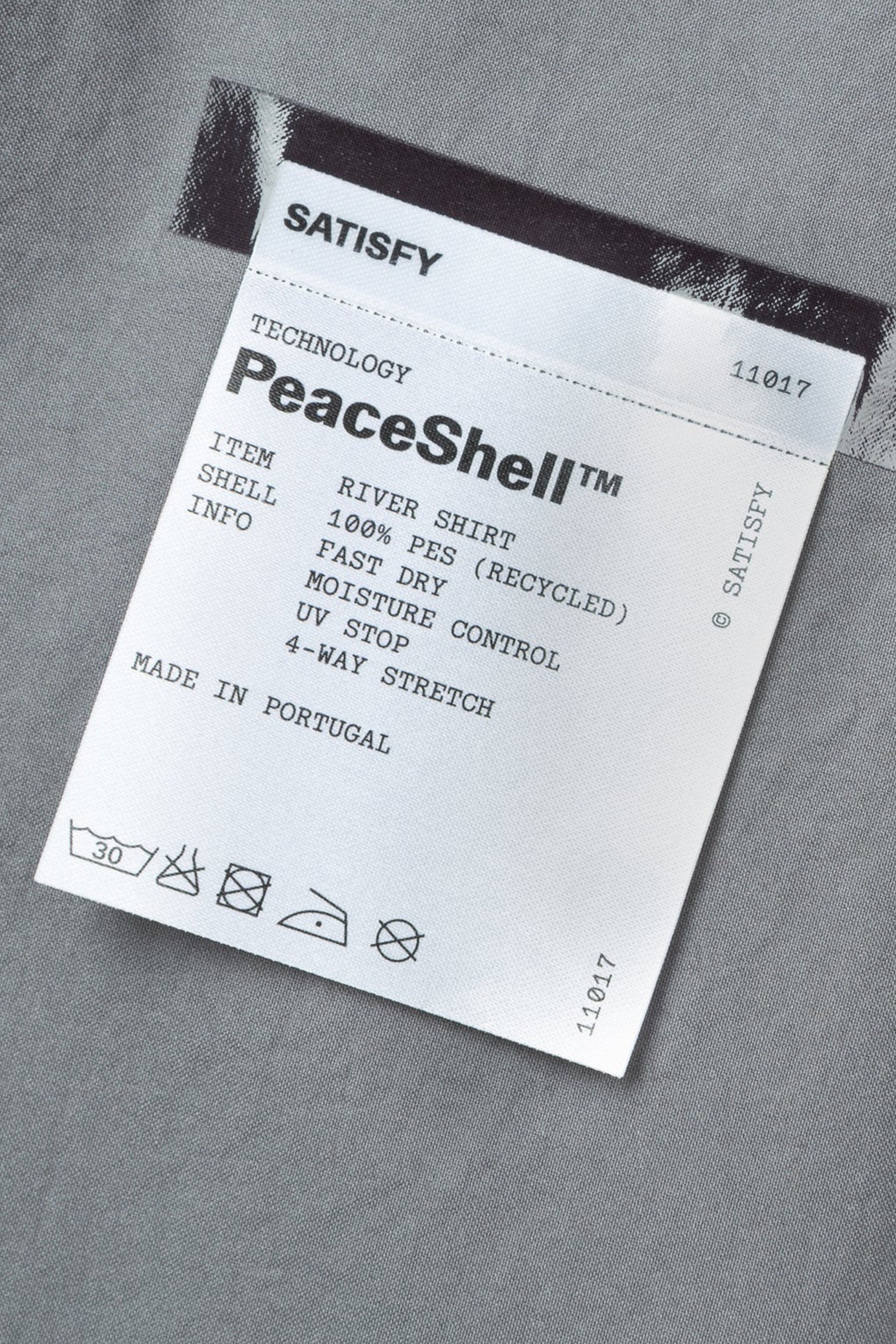 You are looking at the Satisfy Running PeaceShell River Shirt in Lava Smoke.