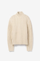 The Acquiles Sweater is made from a ribbed, soft cotton yarn. It features a turtleneck, long sleeves and a straight hem.