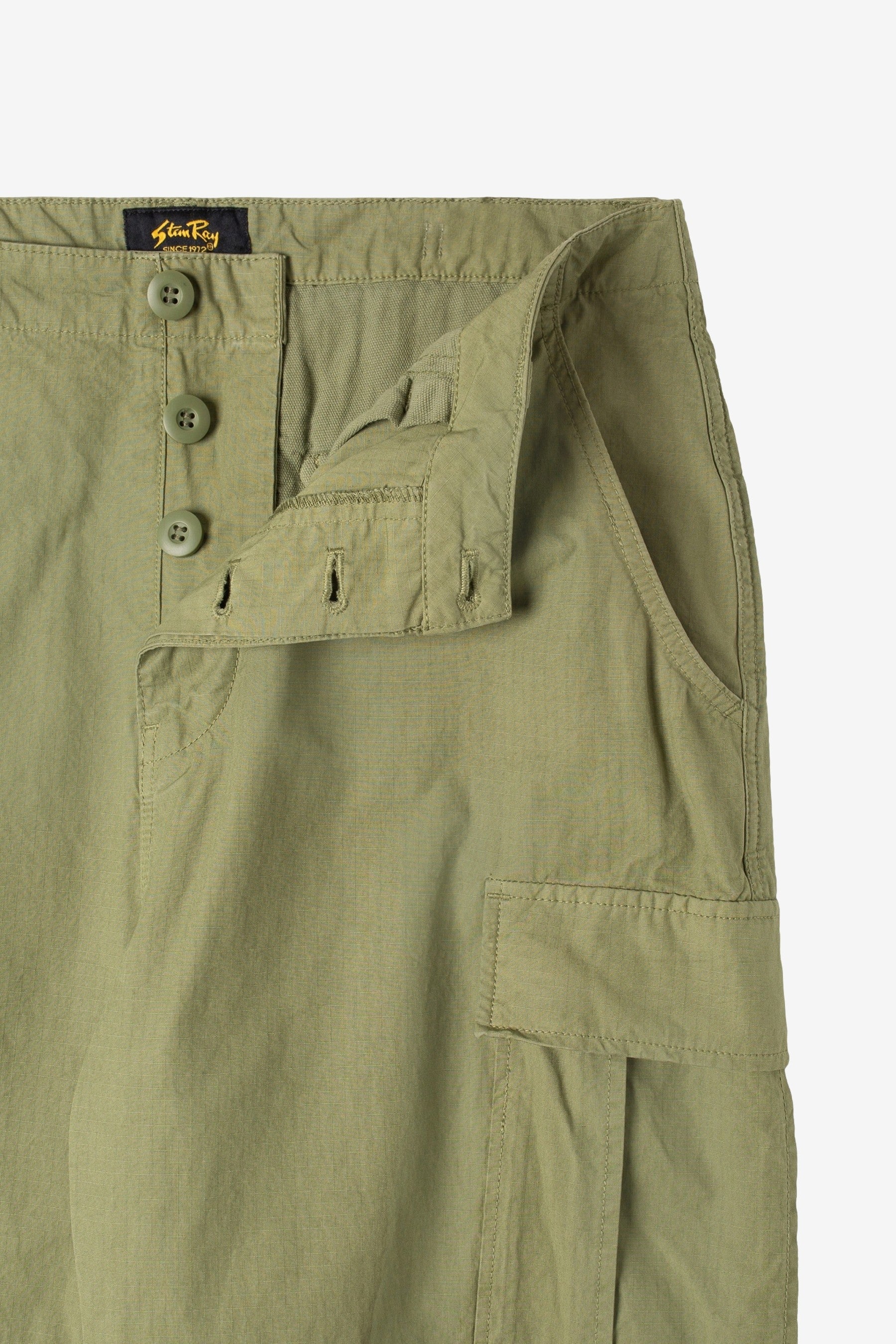 You are looking at the Cargo Pant in Olive Ripstop by Stan Ray.