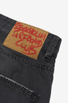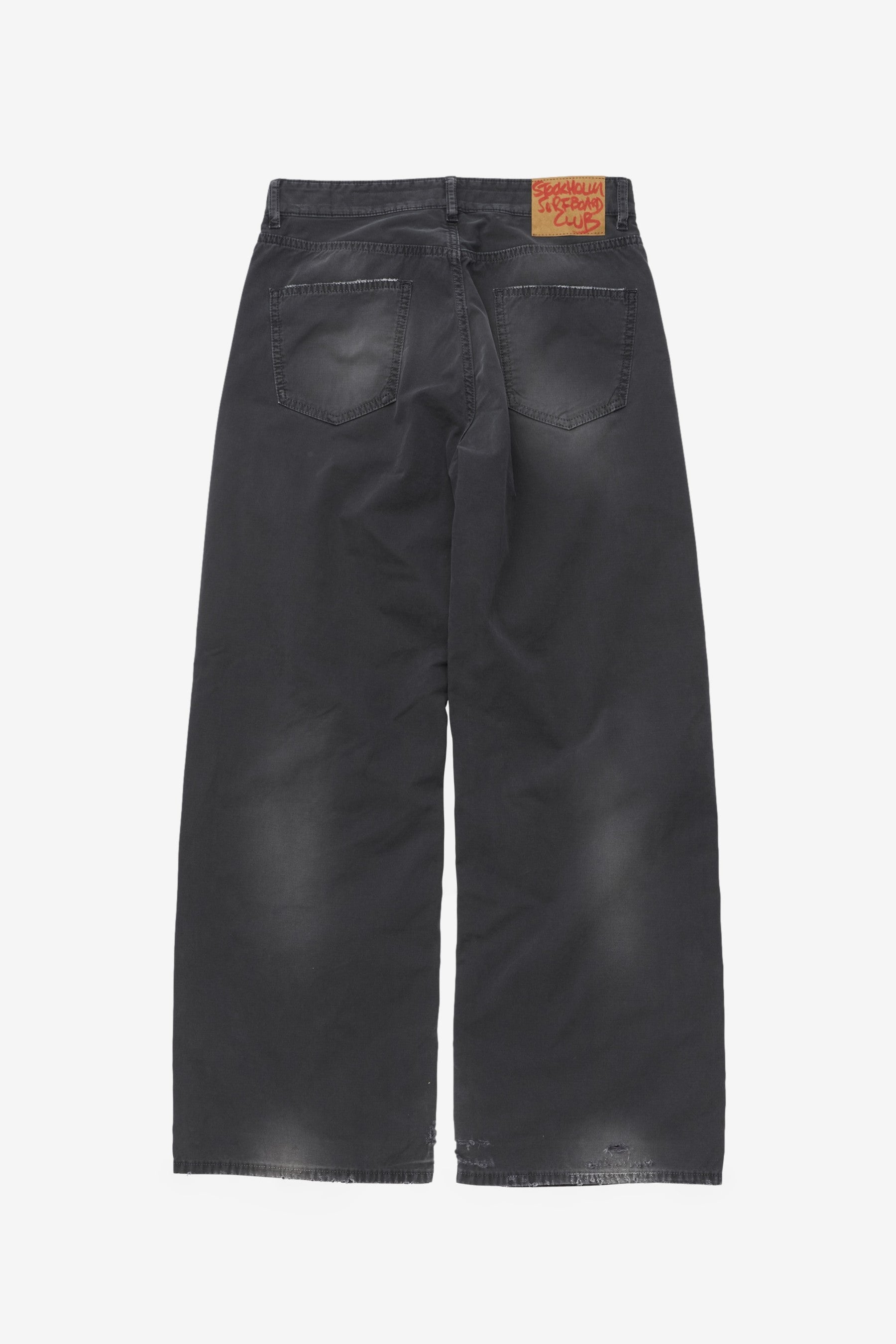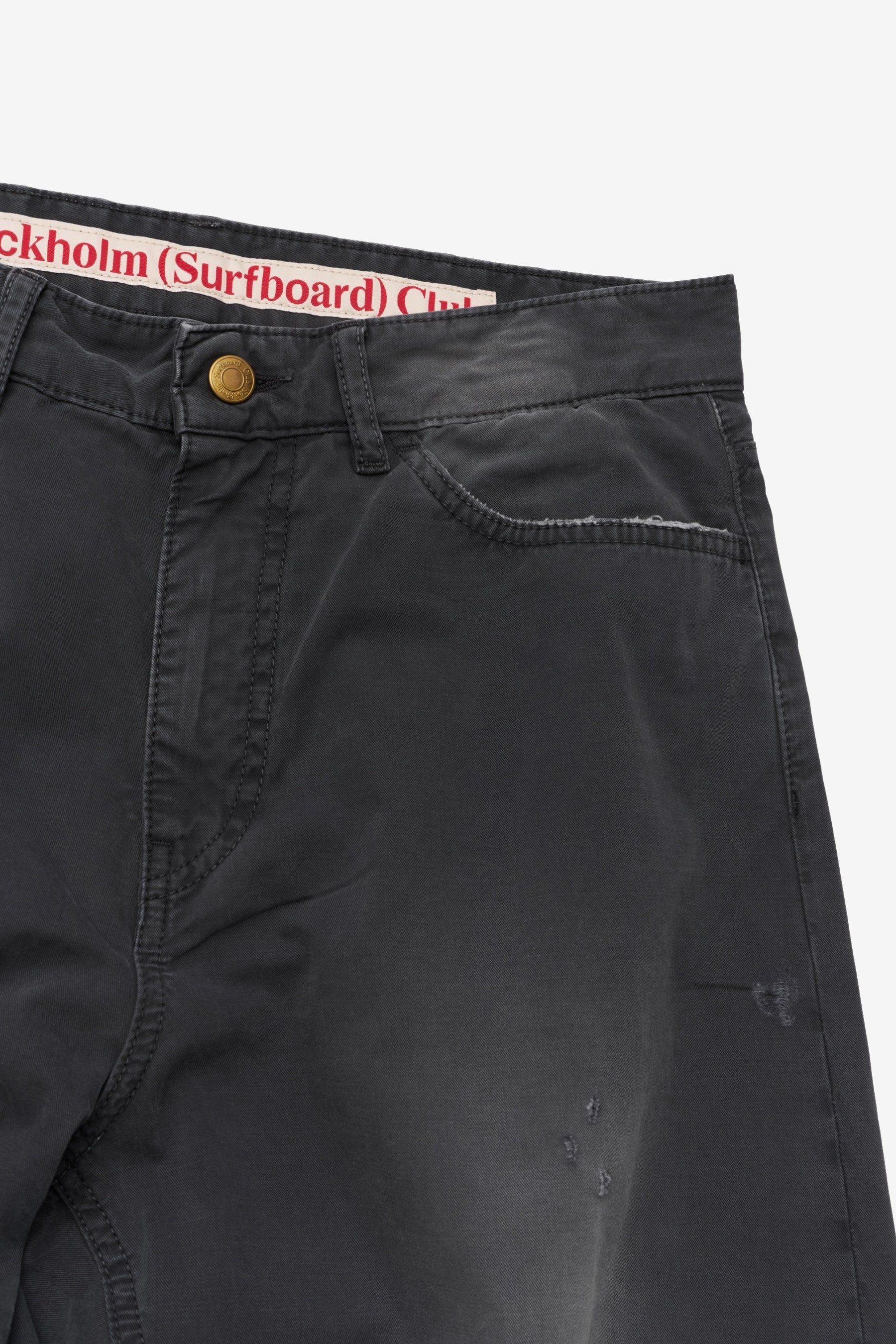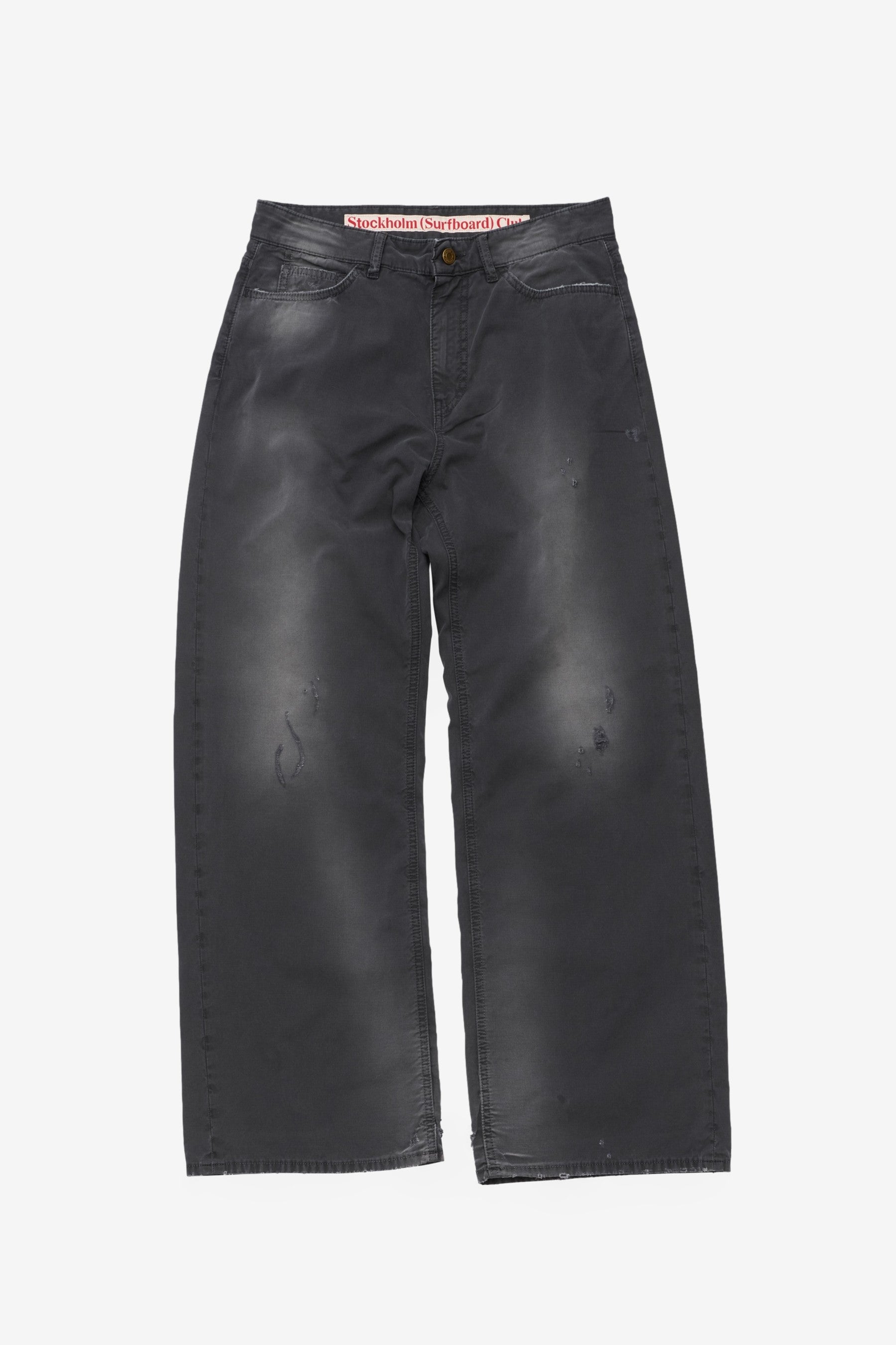 Stockholm Surfboard Club Ralf in Black is a men’s trouser made in Italy from 100% cotton. This five-pocket style has a straight leg, zip fly and subtle distressed detailing, giving the black trouser a clean but worn-in finish.