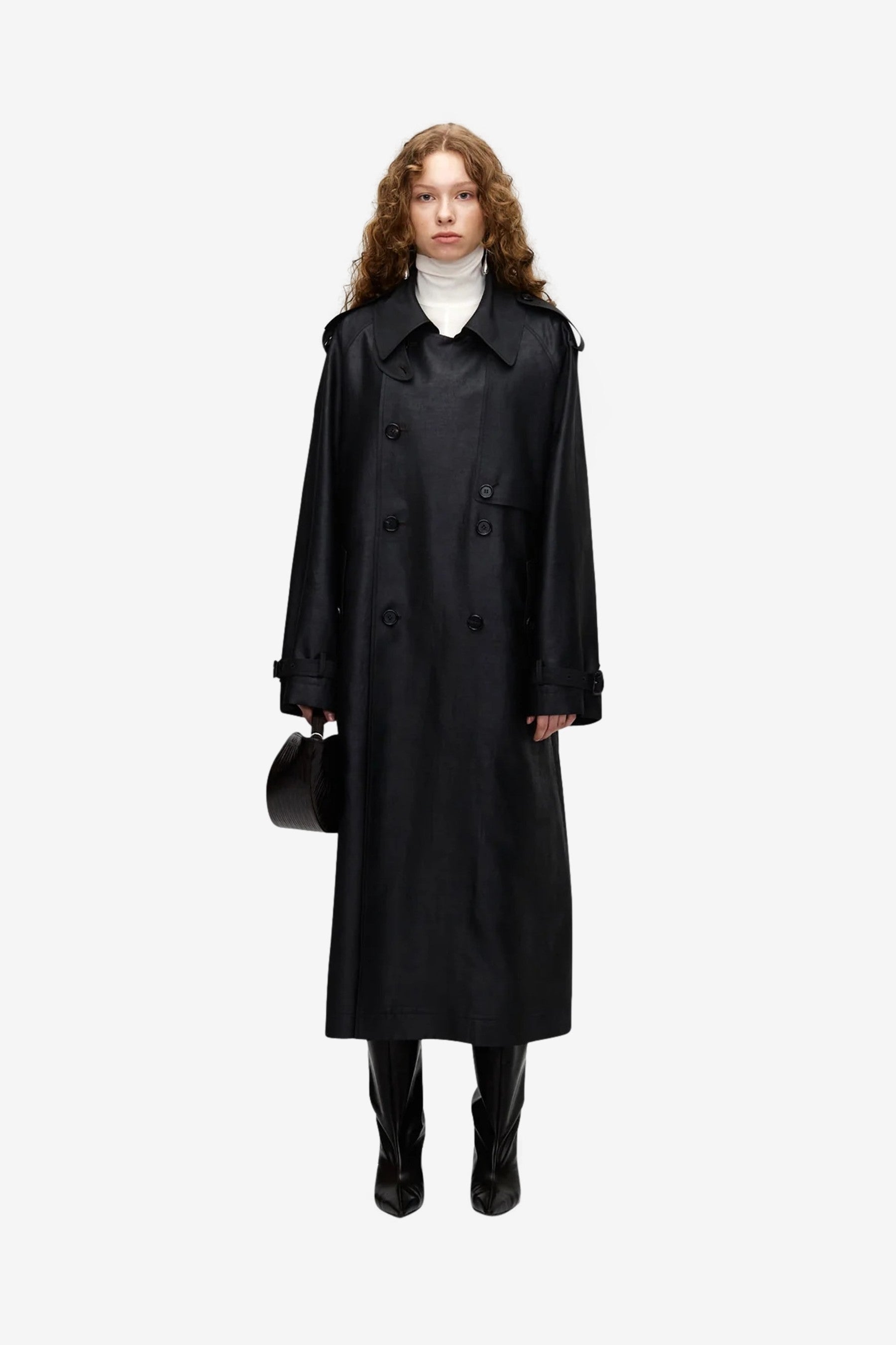 Mud Dyed Silk Trench Coat in Dark Brown